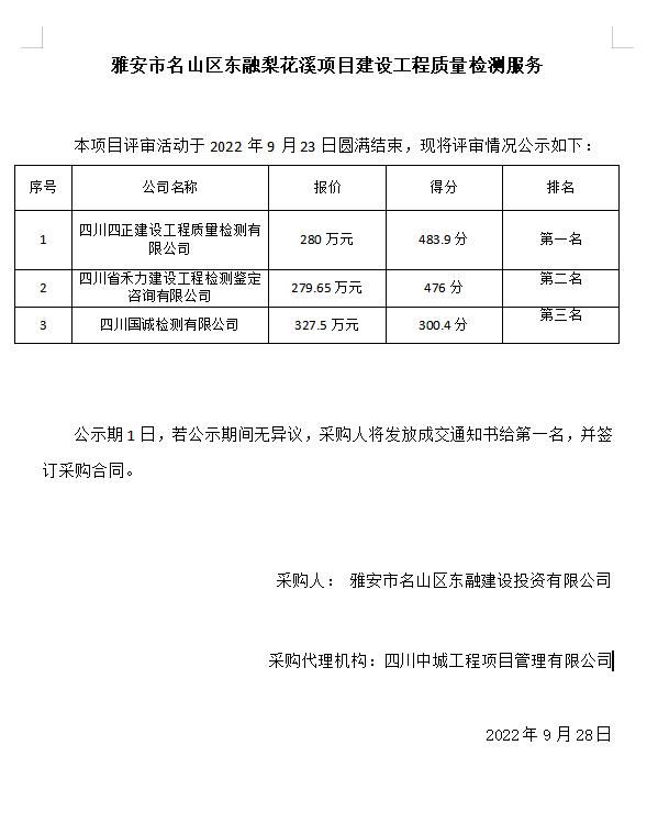 雅安市名山區(qū)東融梨花溪項目建設工程質量檢測服務